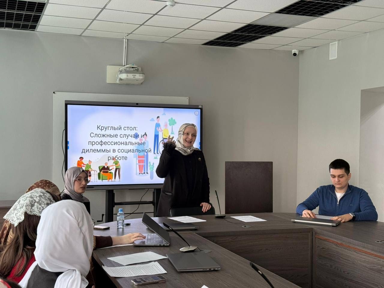 17.02.2026 на юридическом факультете ЧГУ им. А.А. Кадырова прошел круглый стол "Сложные случаи и профессиональные дилеммы в социальной работе". На данном мероприятии рассмаривались такие аспекты как: Право на саморазрушение: можно ли позволить клиенту совершить ошибку (Амиров...