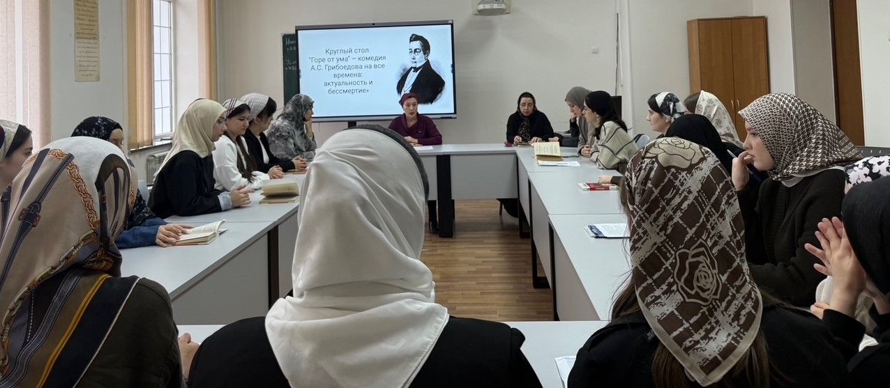 6 декабря 2025г. на филологическом факультете ФГБОУ ВО «Чеченский государственный университет им. А.А. Кадырова» прошел круглый стол на тему «Горе от ума» – комедия А.С. Грибоедова на все времена: актуальность и бессмертие» со студентами 1-3-х курсов...