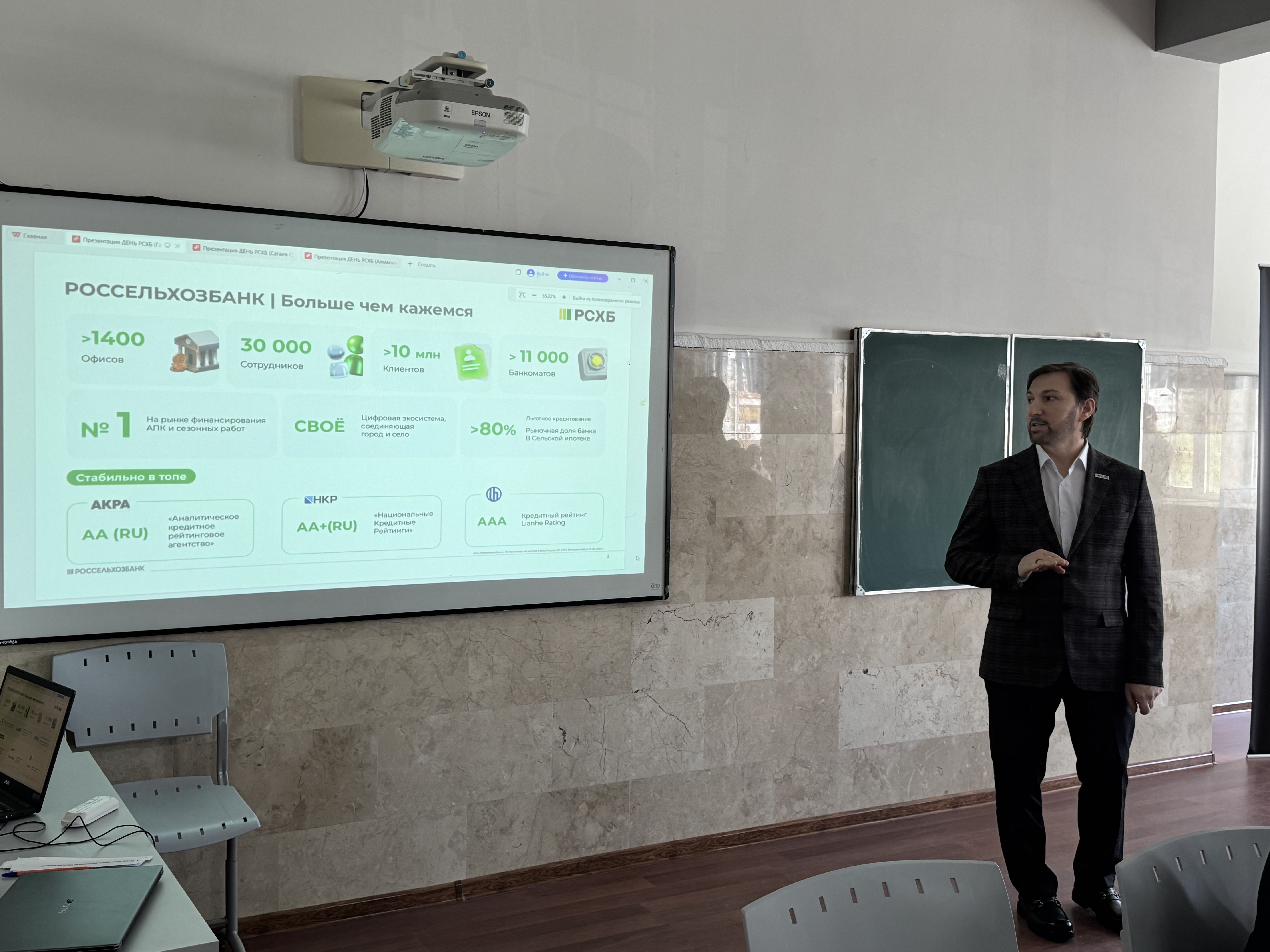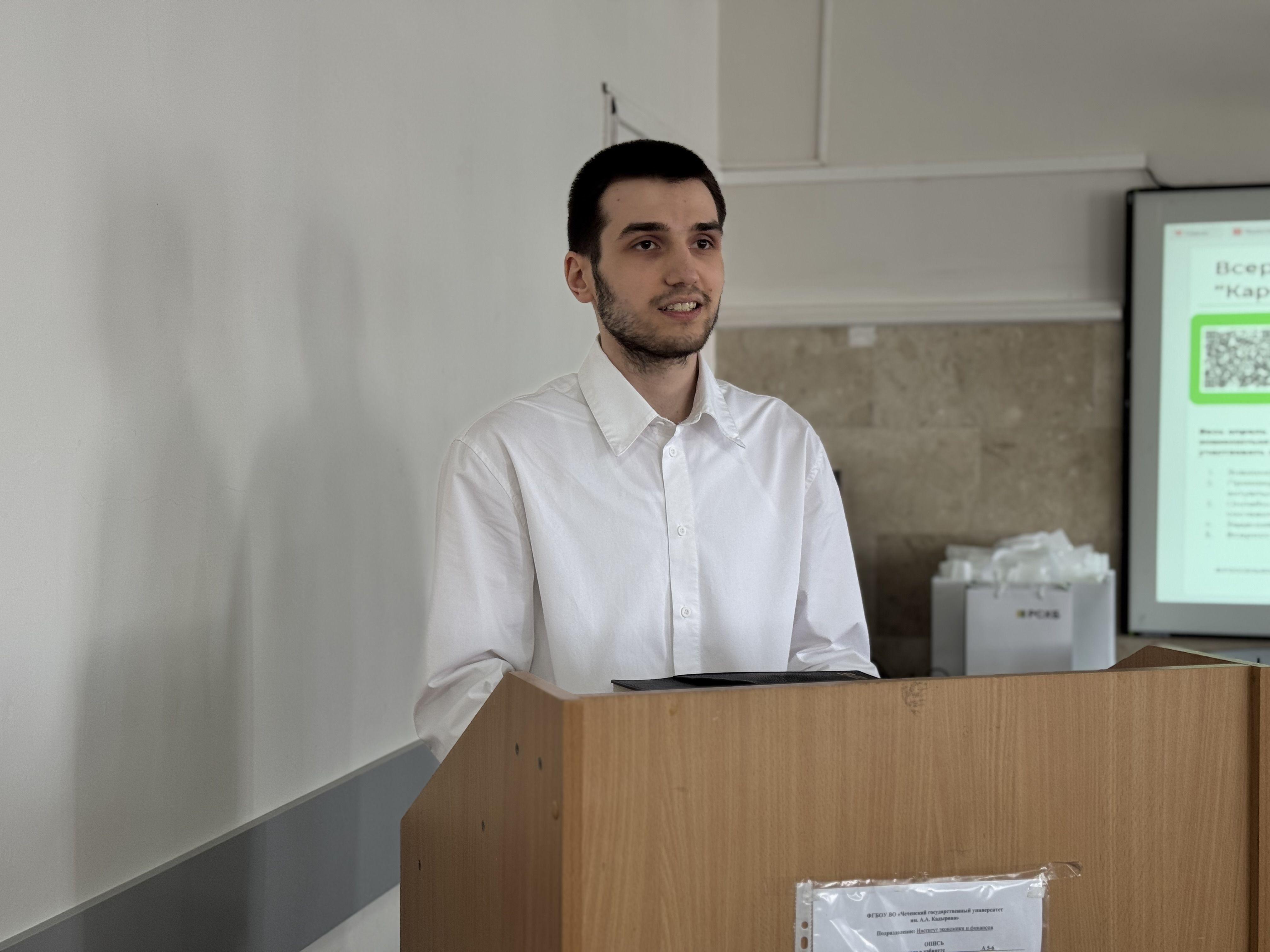 Сегодня состоялась познавательная встреча студентов Института экономики и финансов с представителями Отделения АО «РоссельхозБанк» по Чеченской Республике, в числе которых были заместители директора Эсимбаев Артур Эмиевич и Гайтукаев Адам Магомедович. Мероприятие нацелено на укрепление взаимодействия между вузом и ведущим аграрным банком страны, а также расширение карьерных перспектив для будущих специалистов. Мероприятие открыл директор ИЭФ Гайрбеков Магомед Сайдахматович, выступив с приветственным словом в адрес гостей. В ходе встречи гости подробно рассказали об актуальных направлениях работы банка, его роли в развитии агропромышленного комплекса региона и России в целом. Представители банка представили информацию о ключевых программах поддержки сельского хозяйства, финансовых инструментах для фермеров и сельхозпредприятий, перспективах развития аграрного сектора Чеченской Республики и инновационных банковских технологиях и цифровых сервисах. Отдельный блок был посвящен возможностям профессионального роста для молодых специалистов. Студентам представили условия трудоустройства выпусников, корпоративное обучение и систему наставничества и карьерные траектории в финансовой сфере. Представители банка подробно ответили на вопросы студентов о требованиях к кандидатам, необходимых компетенциях и перспективах развития в банковском секторе. Особое внимание уделили возможностям участия в профильных проектах и программах поддержки молодых специалистов. Участники встречи отметили высокую практическую ценность мероприятия. Студенты получили актуальную информацию о рынке труда и смогли напрямую пообщаться с потенциальными работодателями. Представители банка выразили готовность к дальнейшему сотрудничеству.