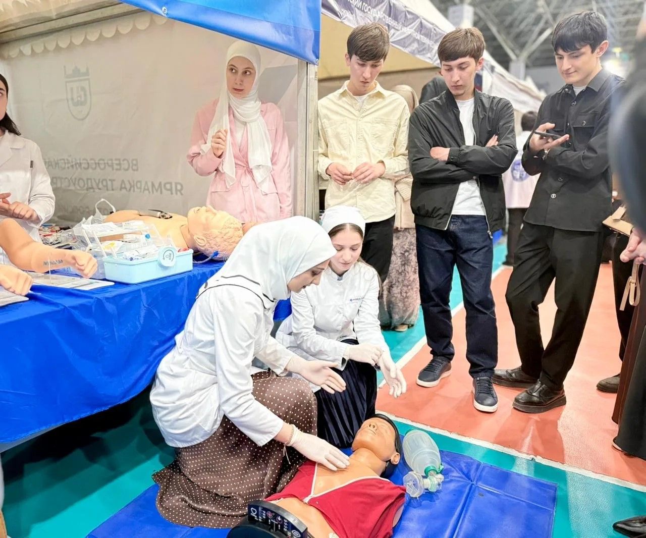 Всероссийская ежегодная ярмарка трудоустройства, которая прошла на базе спортивного комплекса «Олимпийский», собрала участников, среди которых были и студенты медицинского колледжа.