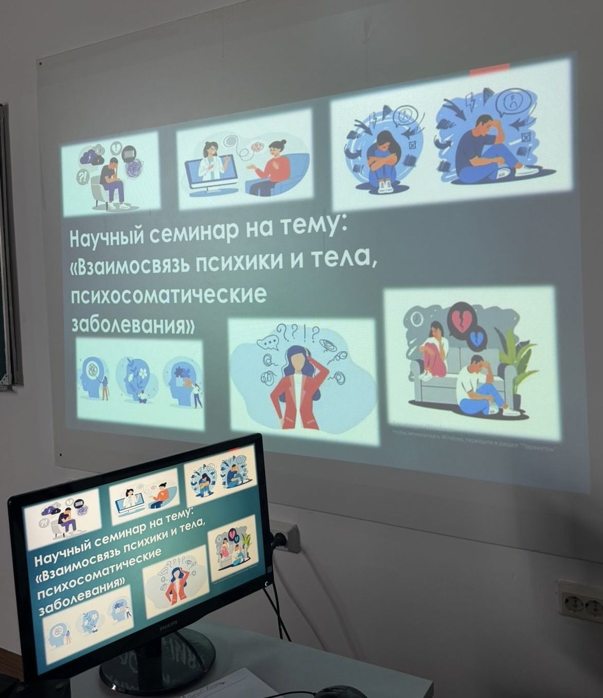 Особое внимание участники семинара уделили обсуждению взаимосвязи психики и тела. Взаимосвязь психики и тела — сложный и многогранный феномен, который изучается в медицине, психологии и физиологии. Соматические (телесные) заболевания могут влиять на психическое состояние, а психологические факторы — на физическое здоровье.