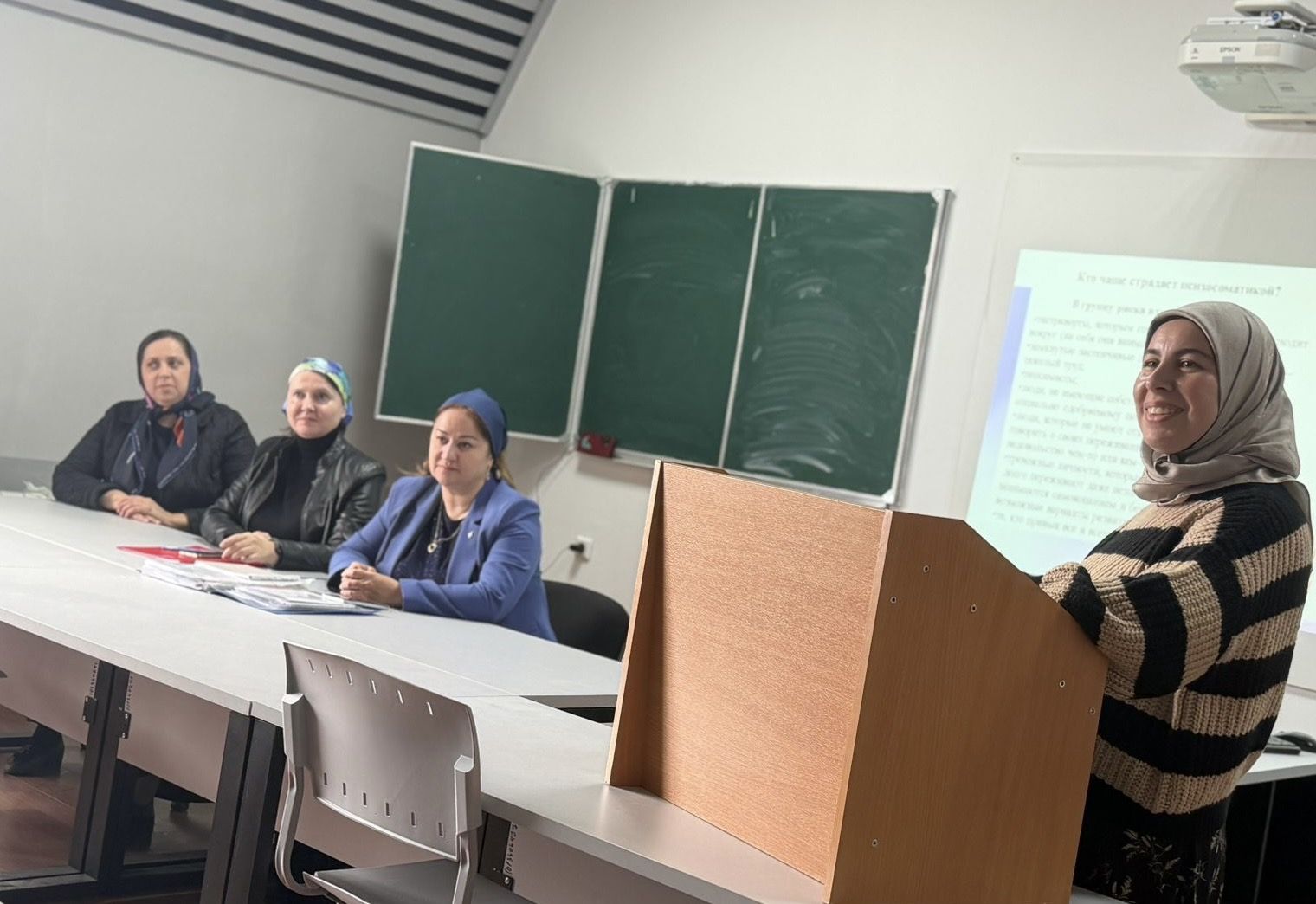 24.04.2026 года на филологическом факультете ЧГУ им. А.А. Кадырова состоялось заседание научного семинара на тему: «Взаимосвязь психики и тела: психосоматические нарушения здоровья и поведения». В заседании приняли участие преподаватели факультета, магистранты и студенты.