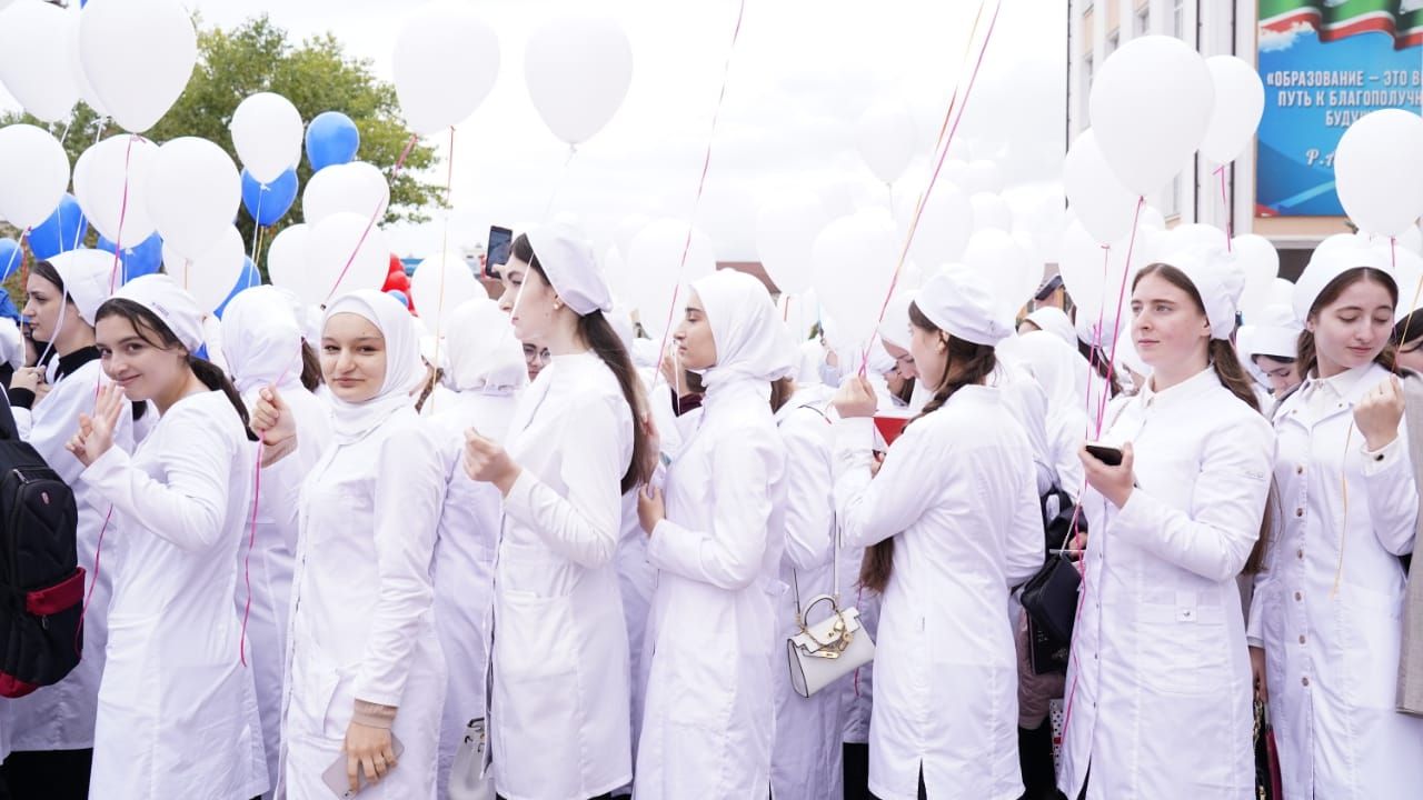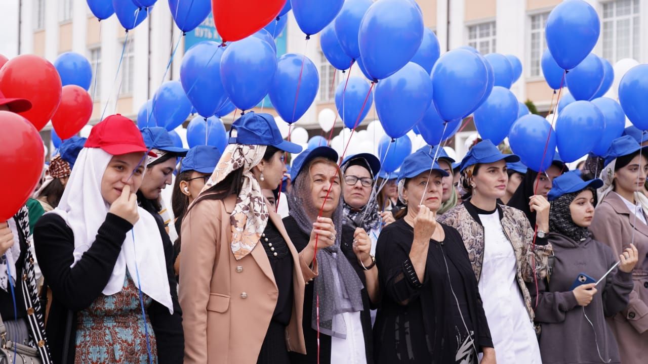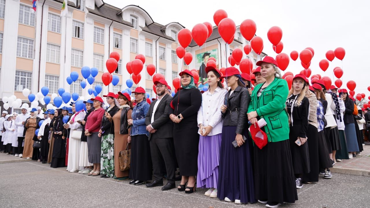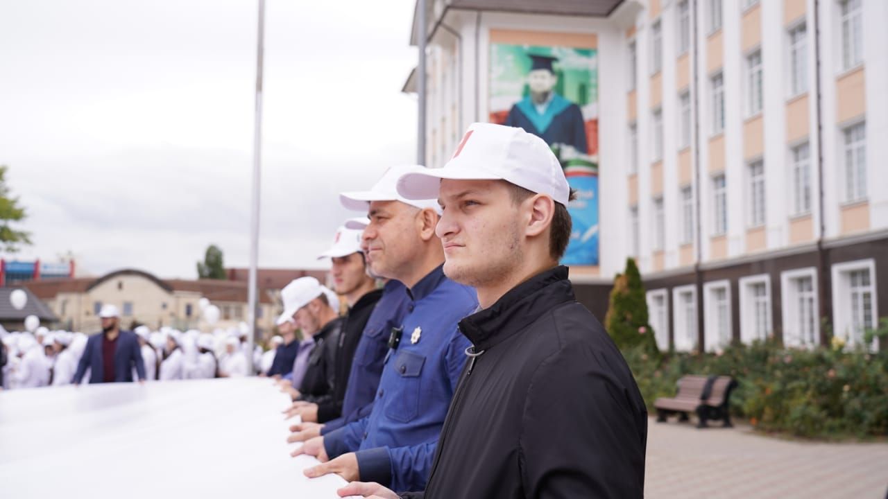 Свыше трех тысяч студентов ЧГУ им. А.А. Кадырова, во главе которых и внук Первого Президента ЧР, Героя России Ахмата-Хаджи Кадырова (Дала г1азот къобал дойла цуьнан!) Ахмат Кадыров.