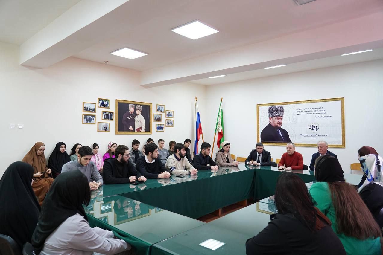 Встреча прошла по инициативе доктора исторических наук, профессора кафедры журналистики Мовлы Осмаева и декана факультета Аюба Абубакарова.