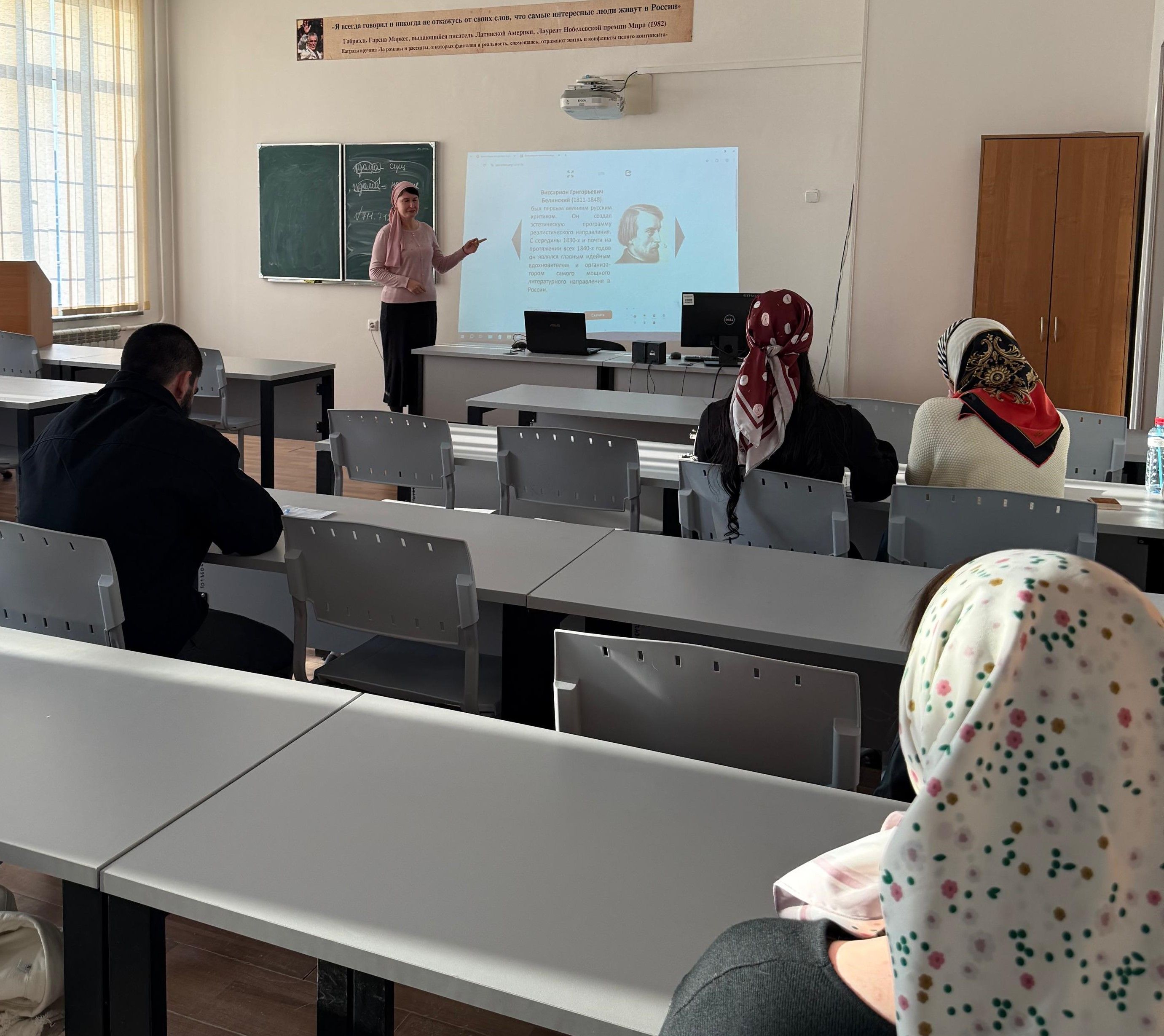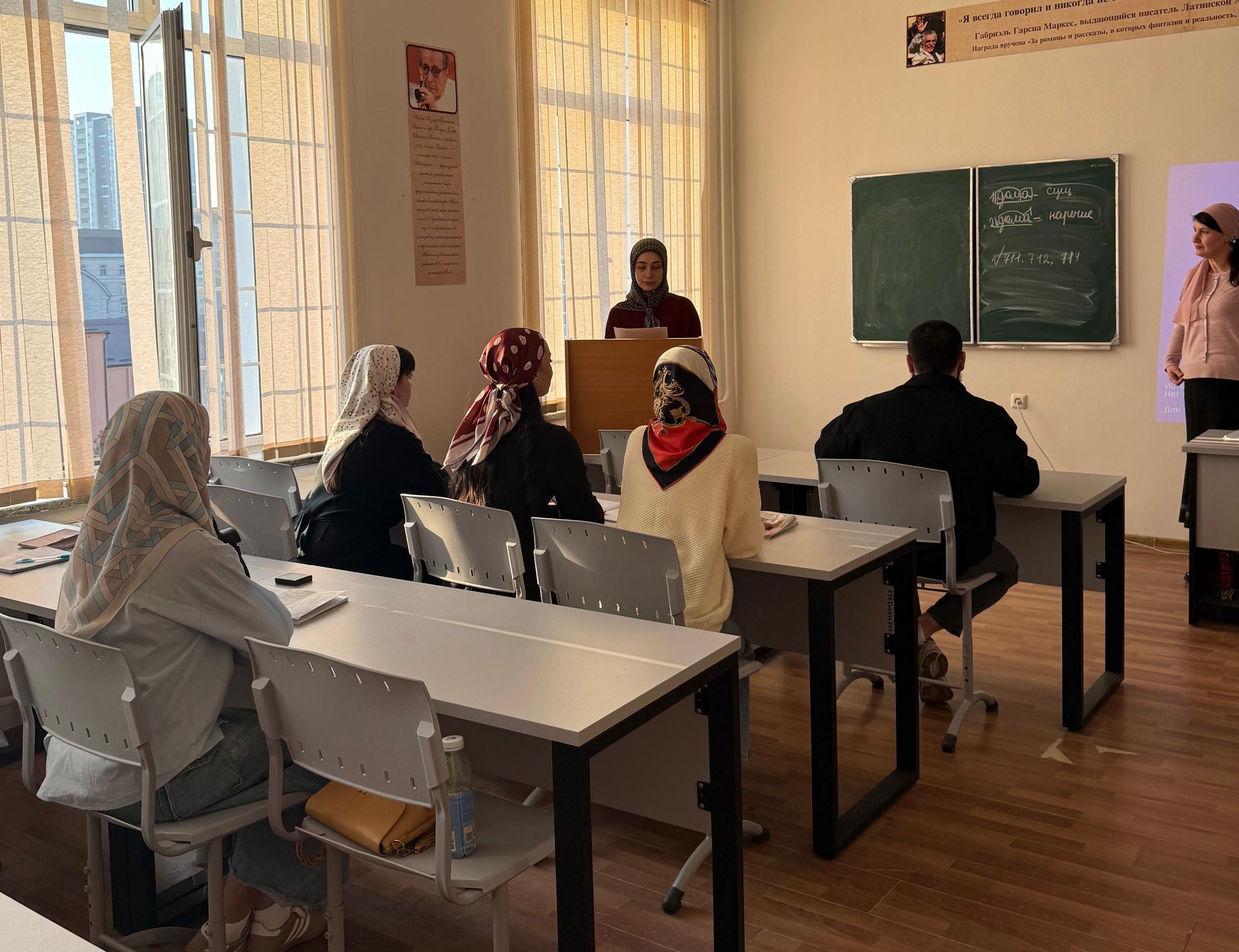 13 ноября 2025 года на филологическом факультете ФГБОУ ВО «Чеченский государственный университет им. А. А. Кадырова» доцент кафедры русской и зарубежной литературы Темаева Х.Н. провела со студентами 4 курса направления подготовки «Филология» открытое практическое занятие на тему: «Критика В.Г. Белинского и литературный процесс».