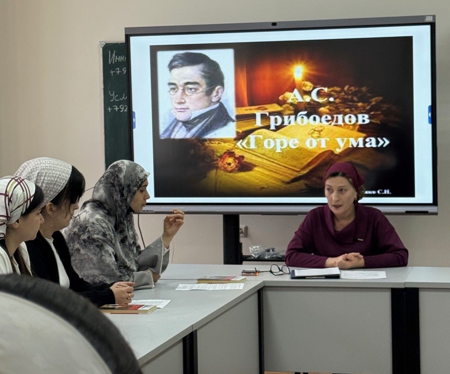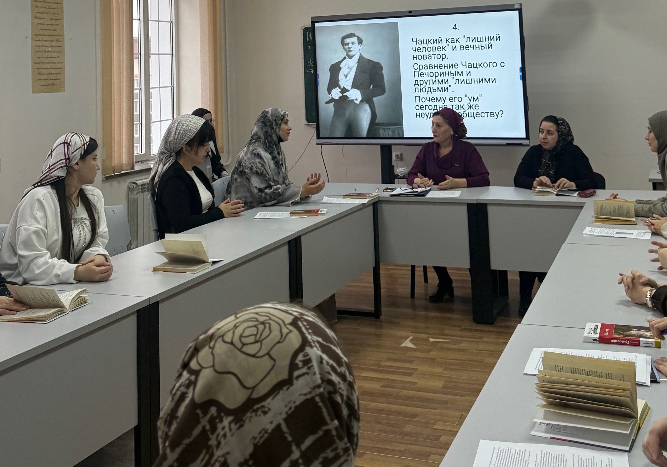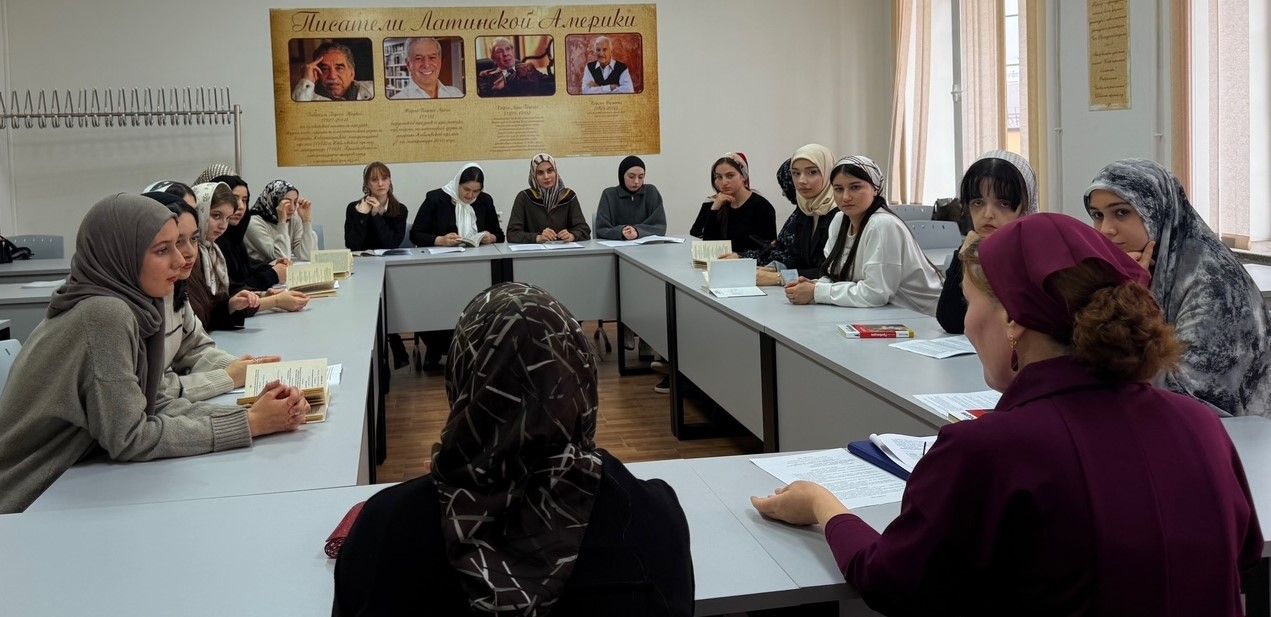 6 декабря 2025г. на филологическом факультете ФГБОУ ВО «Чеченский государственный университет им. А.А. Кадырова» прошел круглый стол на тему «Горе от ума» – комедия А.С. Грибоедова на все времена: актуальность и бессмертие» со студентами 1-3-х курсов направления подготовки «Филология».