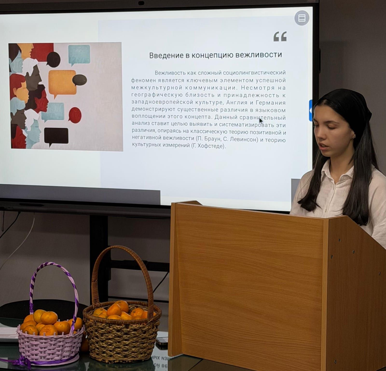 В рамках заседания был проведен студенческий научно-практический семинар на тему «Концепт «вежливости» в разных лингвокультурах». Участники студенческих научных кружков филологического факультета подготовили доклады, в которых провели сравнительный анализ концепта вежливости в различных языках и культурах.