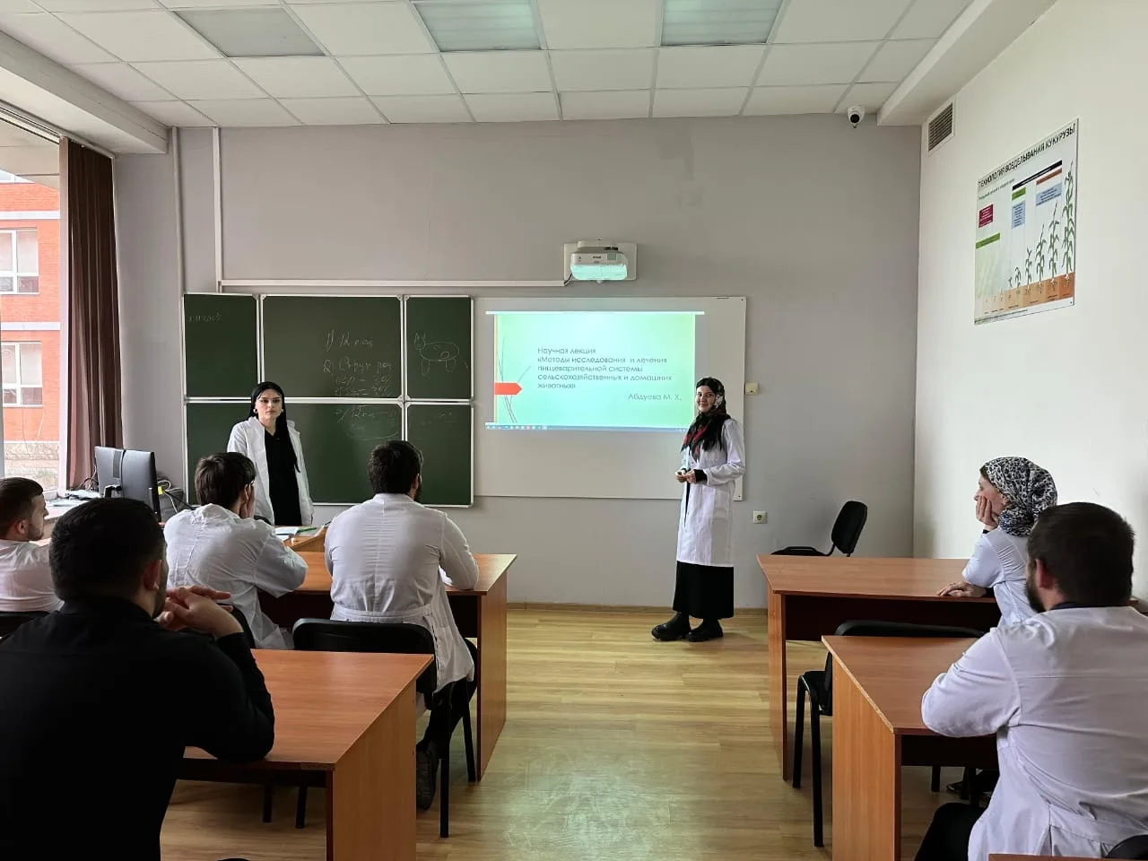 24.12.2025 г. на кафедре ветеринарной медицины и зооинженерии прошла научная лекция СНК "Паразитолог". На заседании присутствовали члены СНК, к.с-х.н., доцент Тарамова Л.В. и ассистенты Султанов М. Р., Динаев А.З., Дудаев Ш. М..С докладом на тему "Методы исследования и лечения пищеварительной системы сельскохозяйственных животных" выступила студентка 3 курса специальности "Ветеринария" Абдуева М. Руководитель СНК Абдулхажиева Айсет Шаамановна рассказала, что смысл исследования и лечения пищеварительной системы сельскохозяйственных животных заключается в поддержании их продуктивности и экономической рентабельности хозяйства. В промышленном животноводстве это не просто вопрос гуманности, а расчет по следующим направлениям: ранняя диагностика массовых заболеваний, сохранение продуктивности, ухудшению качества шерсти или яиц, контроль обмена веществ, пищевая безопасность для человека. Больное животное не может давать качественное мясо и молоко. Исследования позволяют исключить наличие паразитов (гельминтов) и патогенных бактерий (сальмонеллез и др.), которые могут передаться человеку через продукты питания.