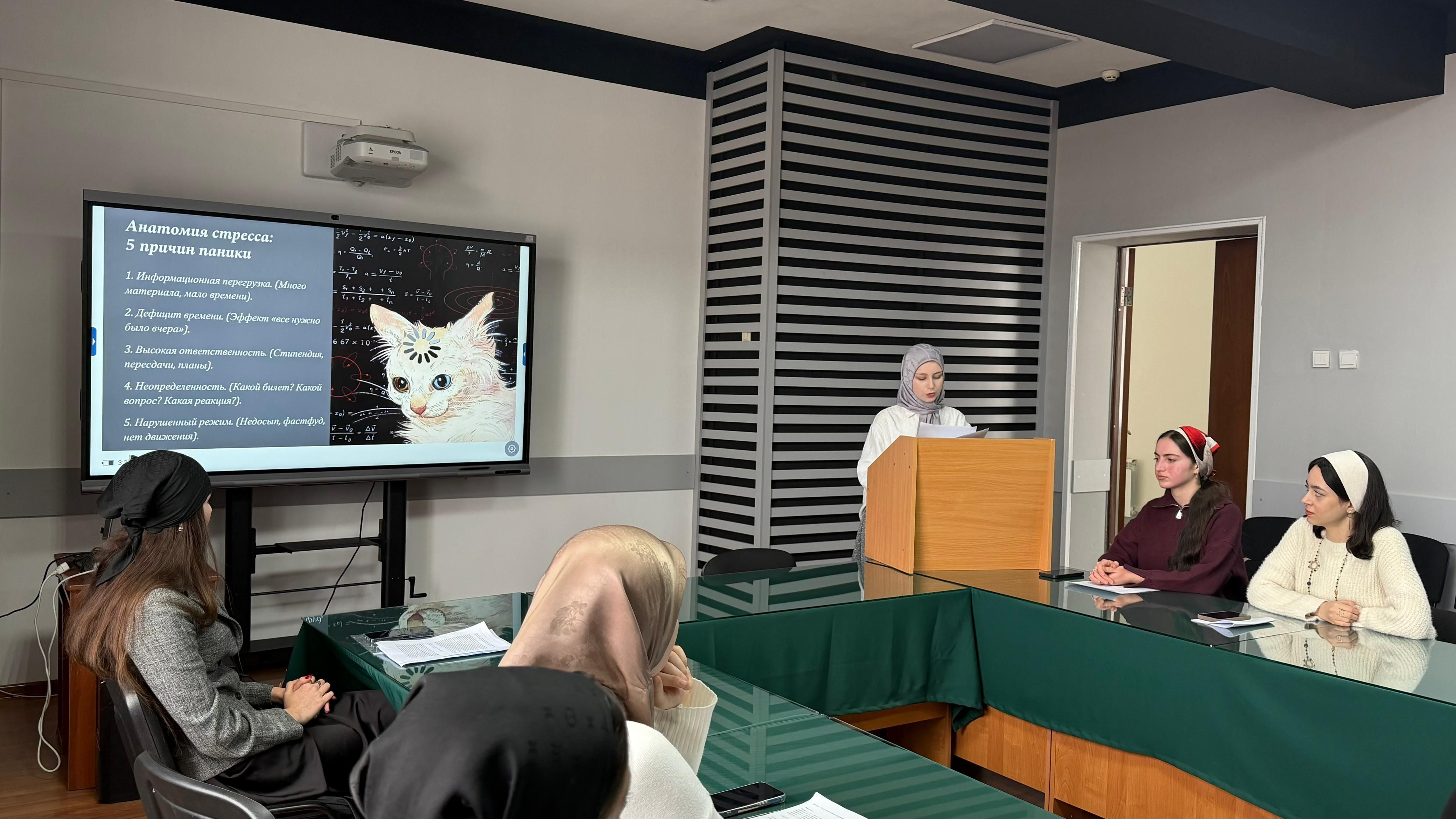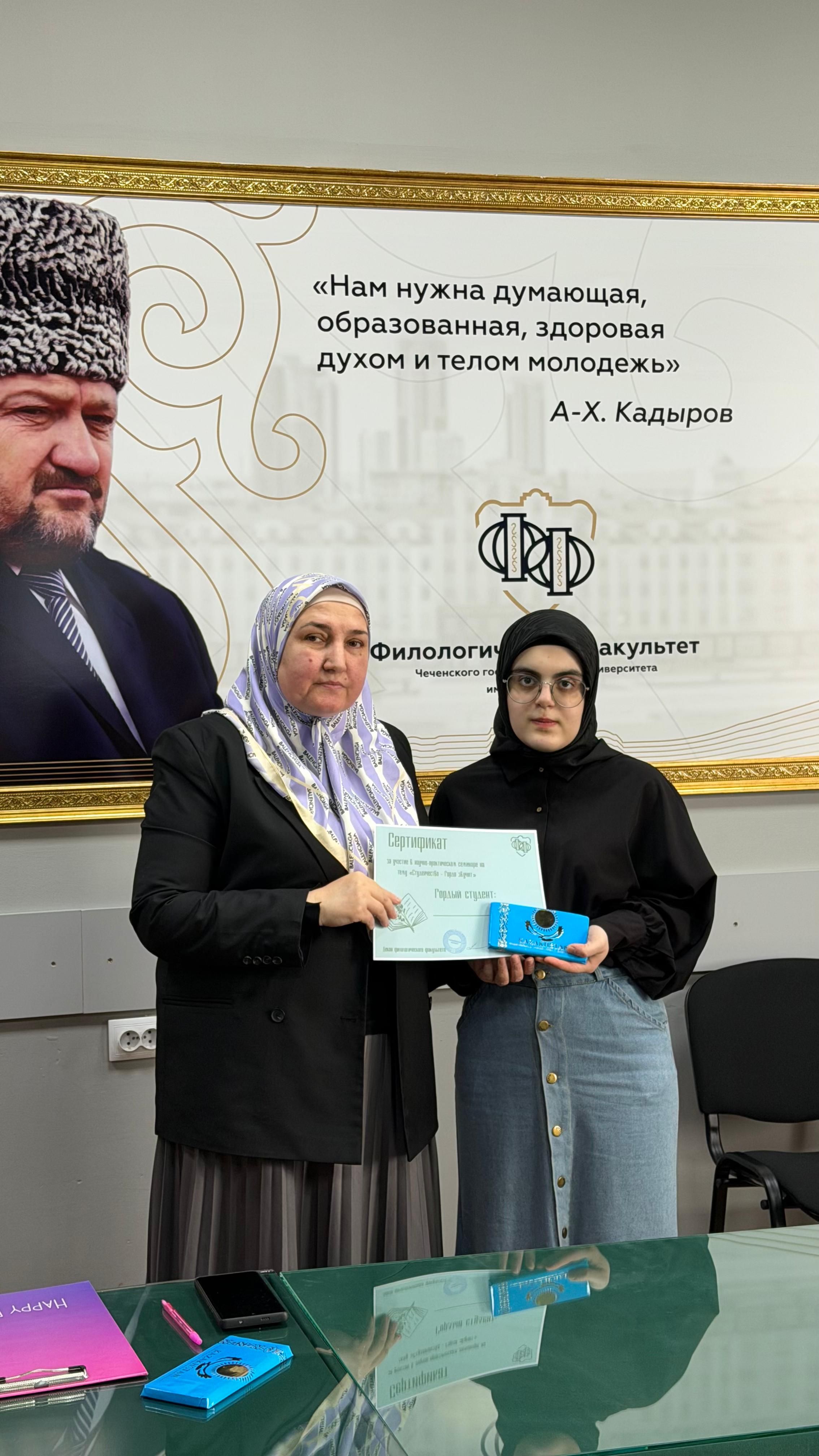 Члены студенческого научного общества «Поколение Next» и студенческого научного кружка «Культура речи и речевой этикет» провели научно-практический семинар под руководством Х. С. Арсакаевой на тему «Студенчество —это звучит гордо!».