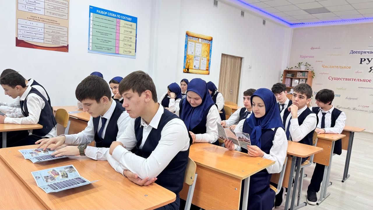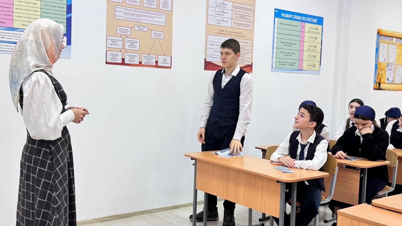 В рамках профориентационной работы преподаватель колледжа Умалатова А.М. посетила МБОУ «Гимназия им. Шамсудова И.М.-С. г. Шали».