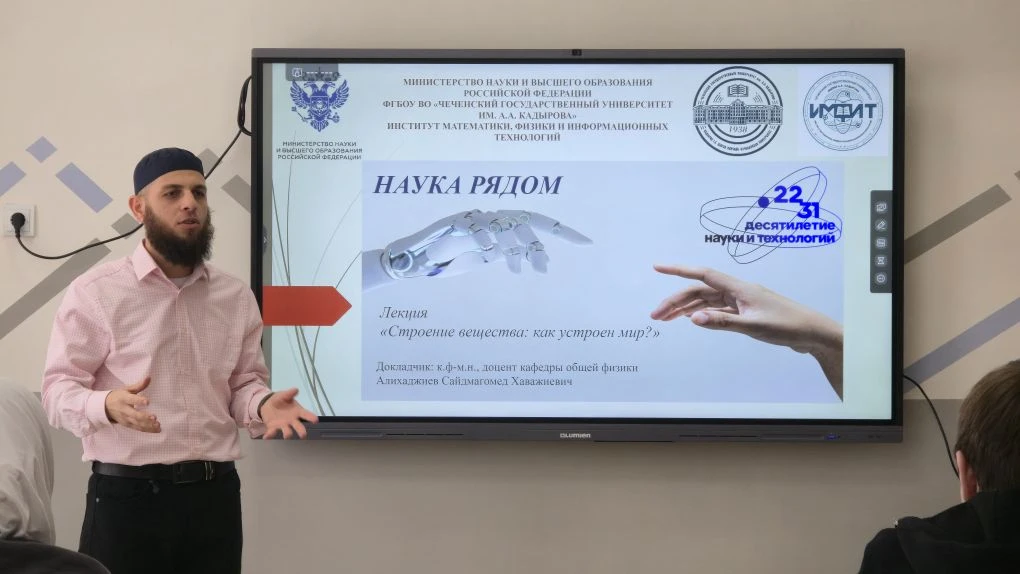 В школе № 56 города Грозного в рамках всероссийской инициативы «Наука рядом» состоялась увлекательная лекция «Строение вещества: как устроен мир?». Перед учащимися старших классов выступил доцент кафедры «Общая физика» Чеченского государственного университета имени А.А. Кадырова, Саидмагомед Хаважиевич Алихаджиев.