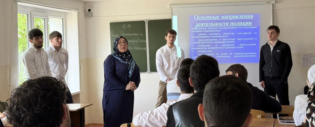 Преподавателем колледжа Алхановой З.С. был проведён урок- игра на тему "Принципы и основные направления деятельности полиции". Цель занятия:  сформировать представление о полиции, как институте правопорядка, изучить ее принципы и направления деятельности.