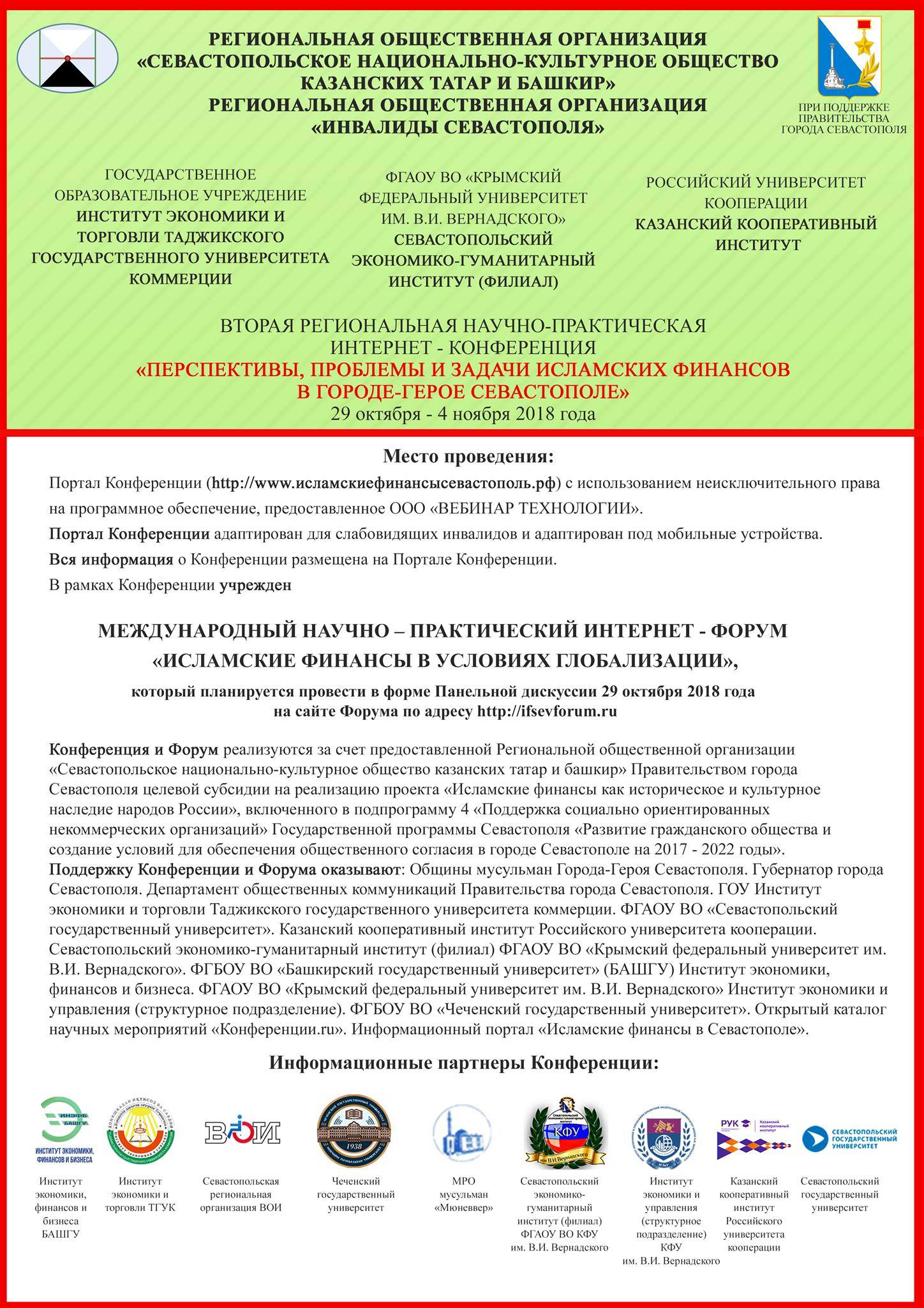 Вся информация о Конференции на Портале Конференции по адресу http://www.исламскиефинансысевастополь.рф